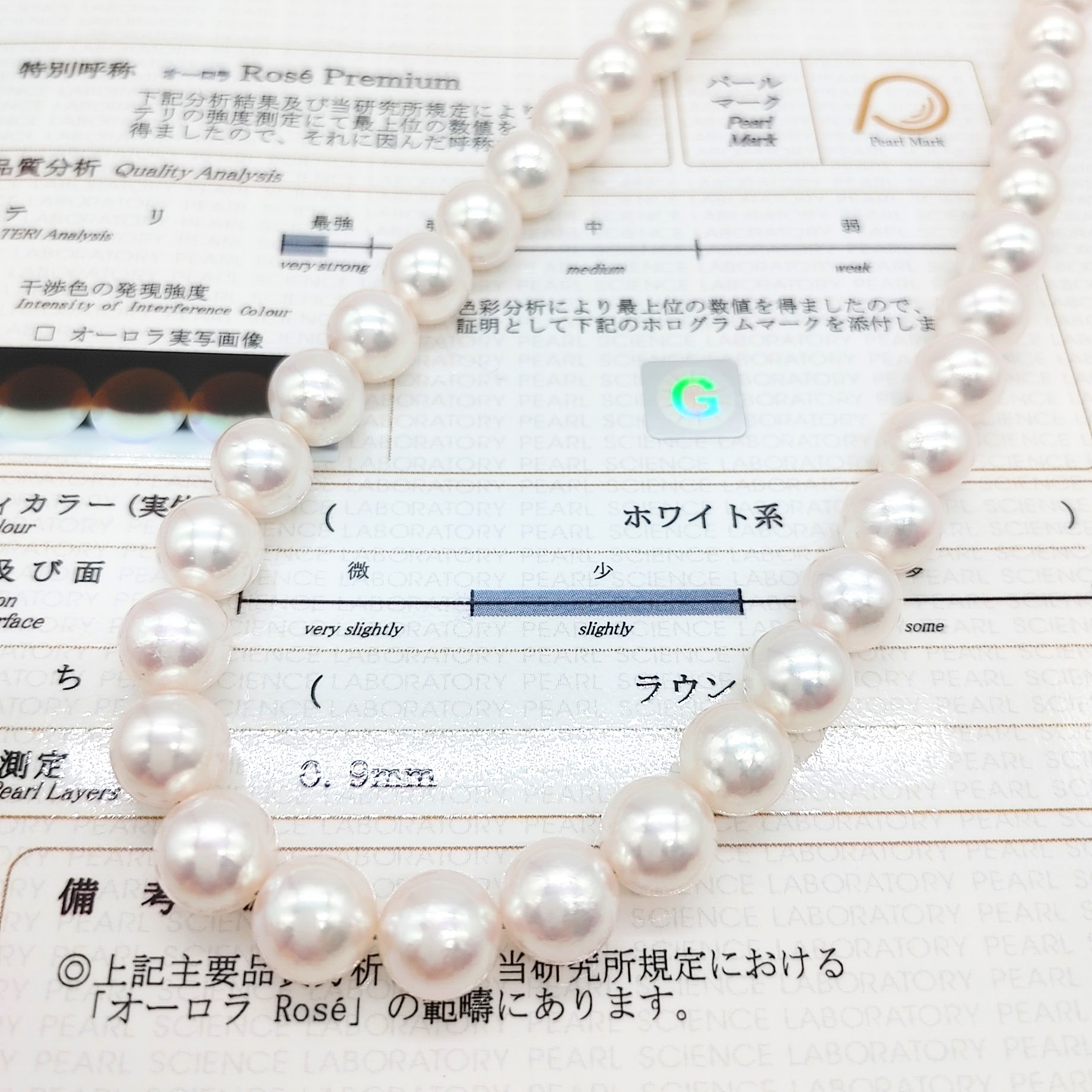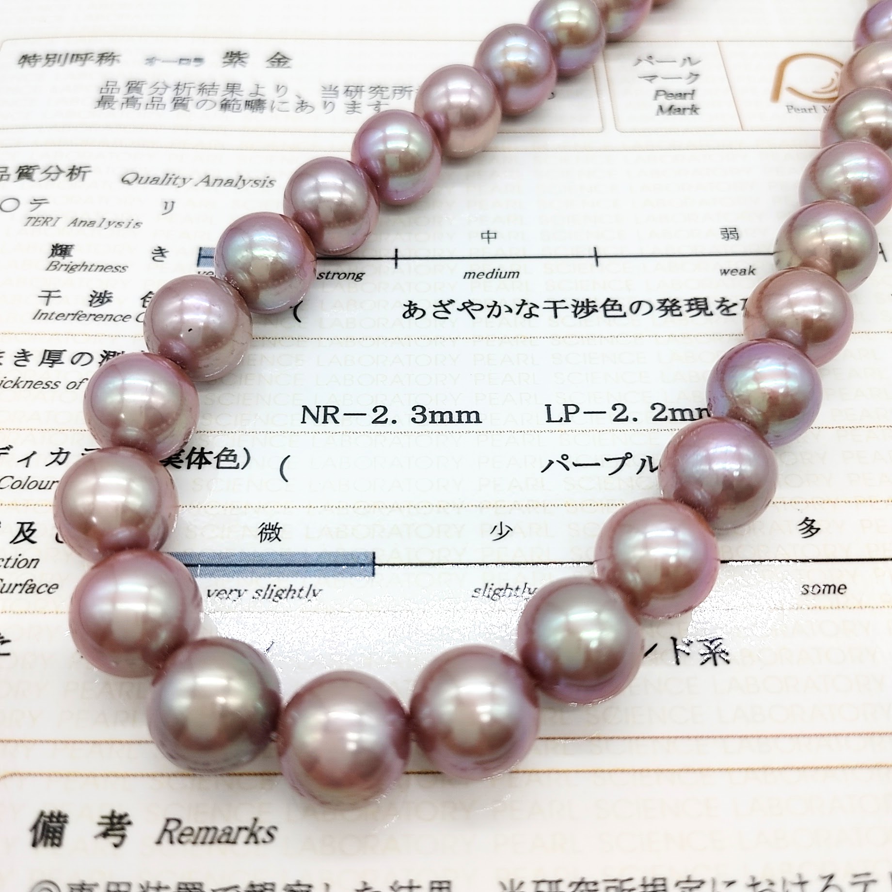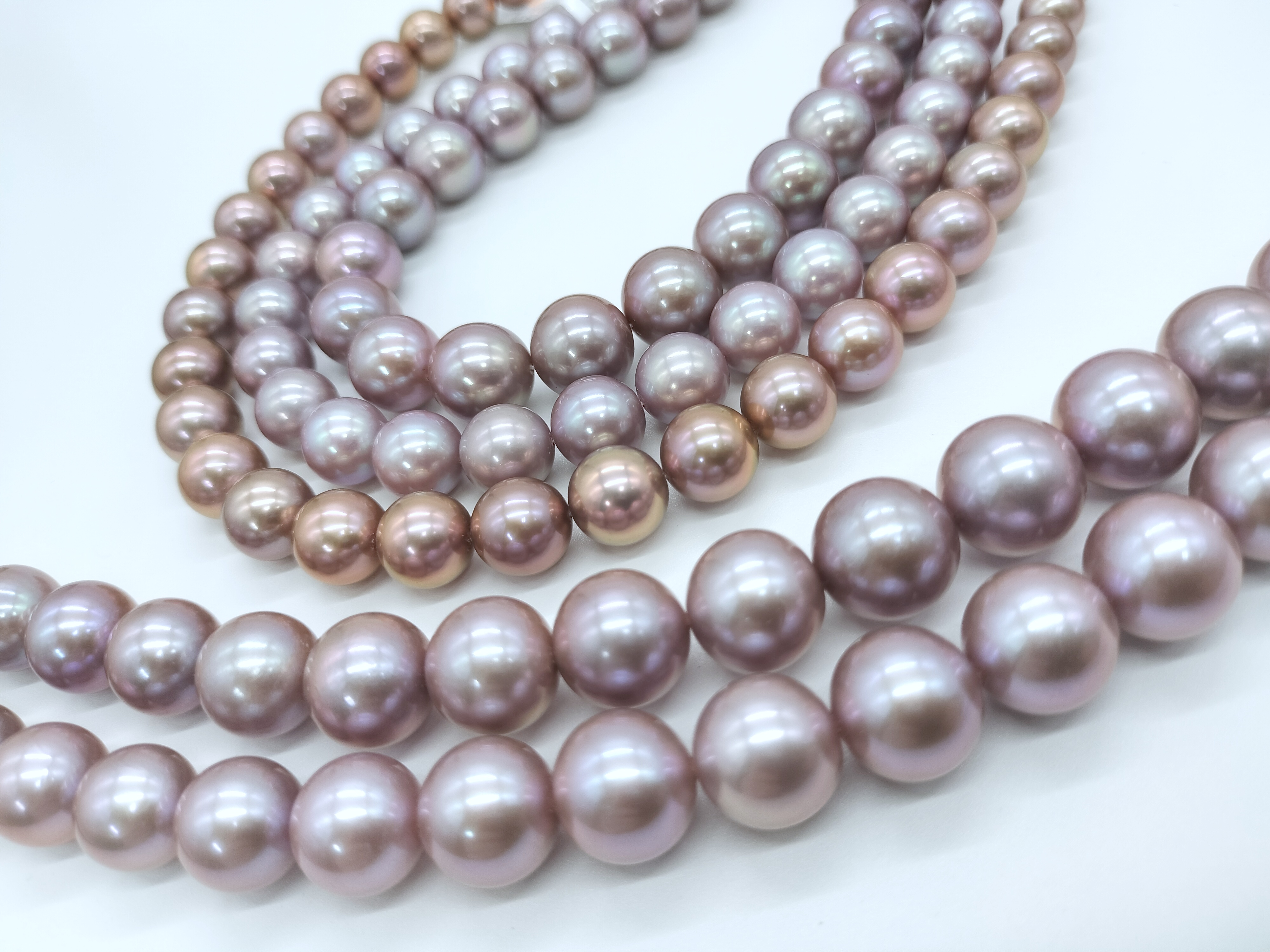 何層にも巻かれた真珠層が創り出す特有の干渉色は他の真珠には無い独特の美しさです。