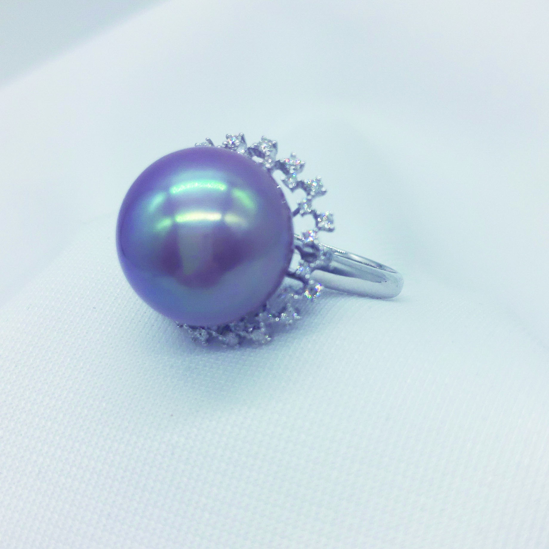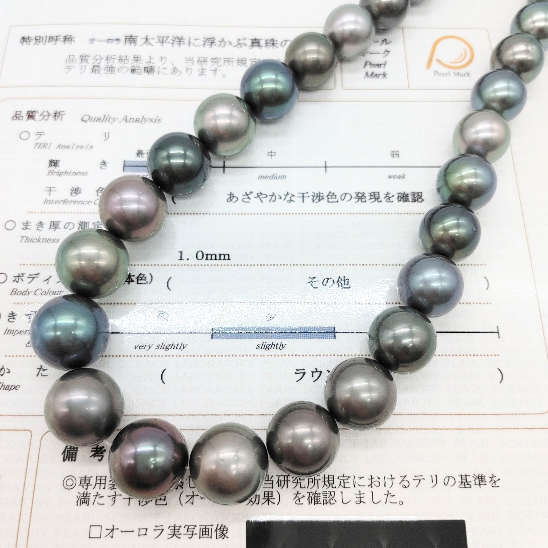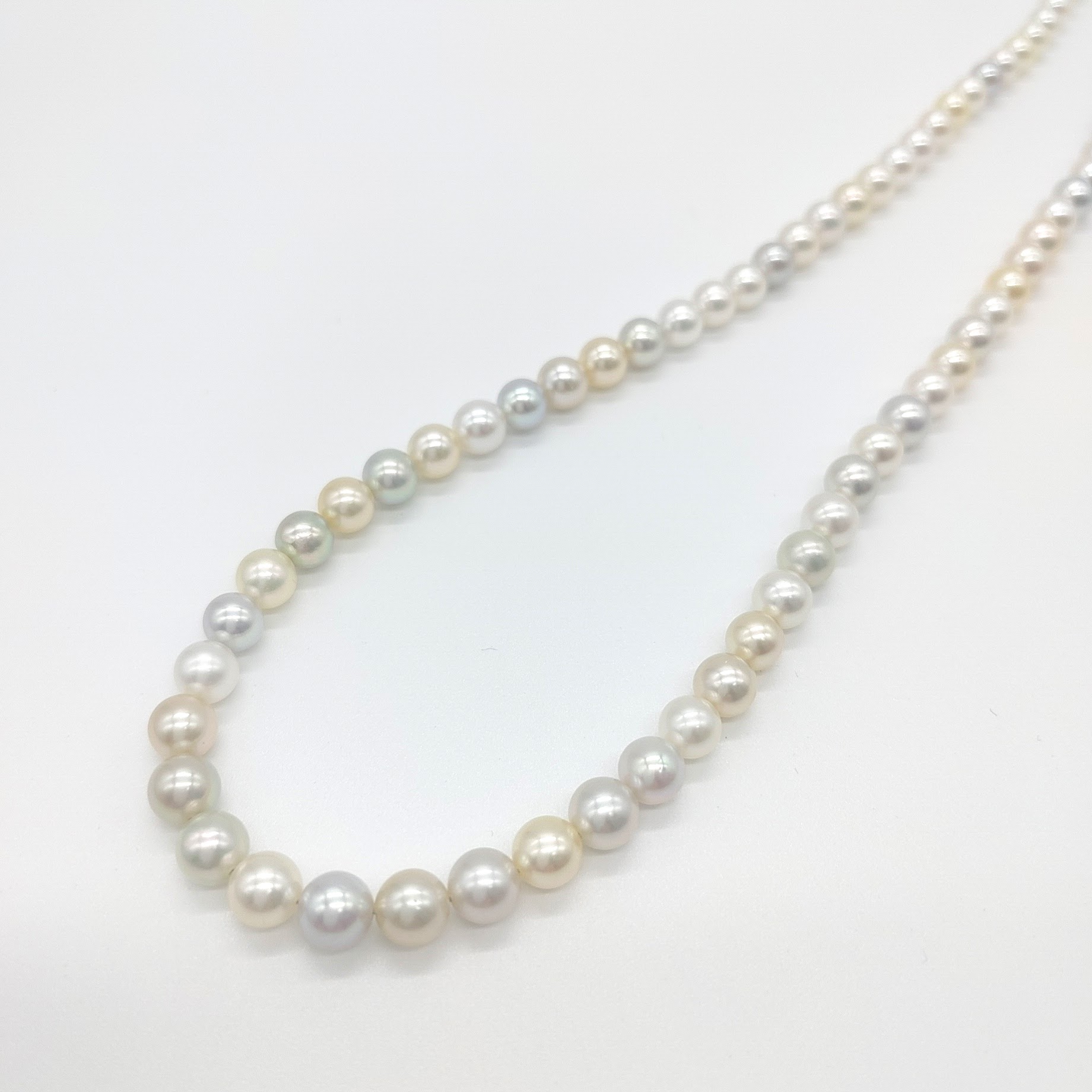 何層にも巻かれた真珠層が創り出す特有の干渉色は他の真珠には無い独特の美しさです。