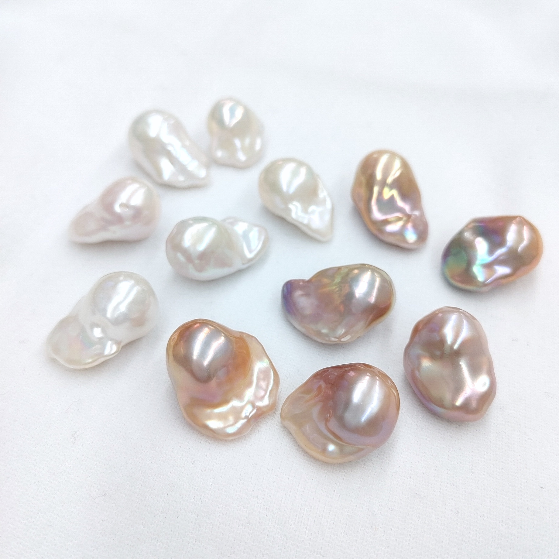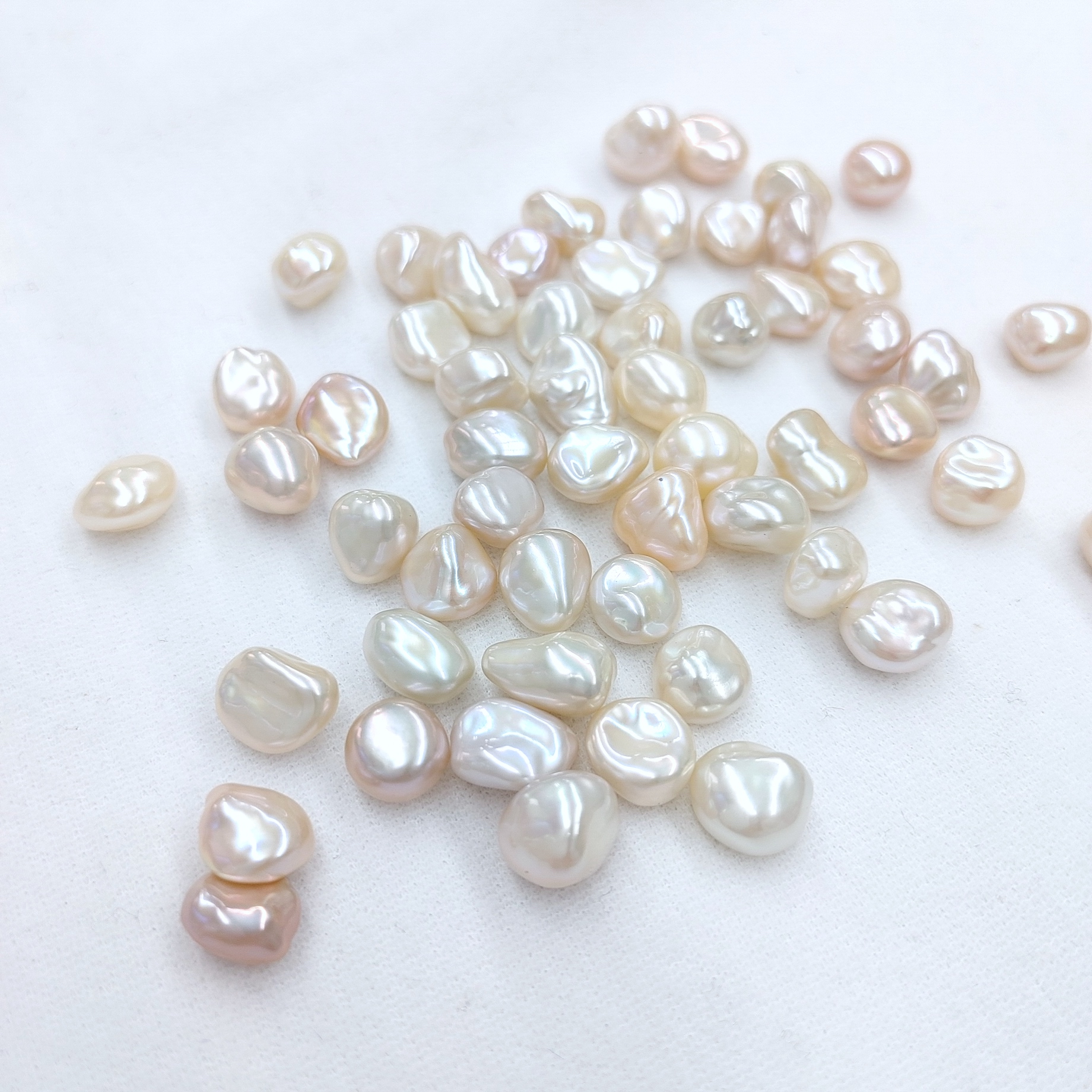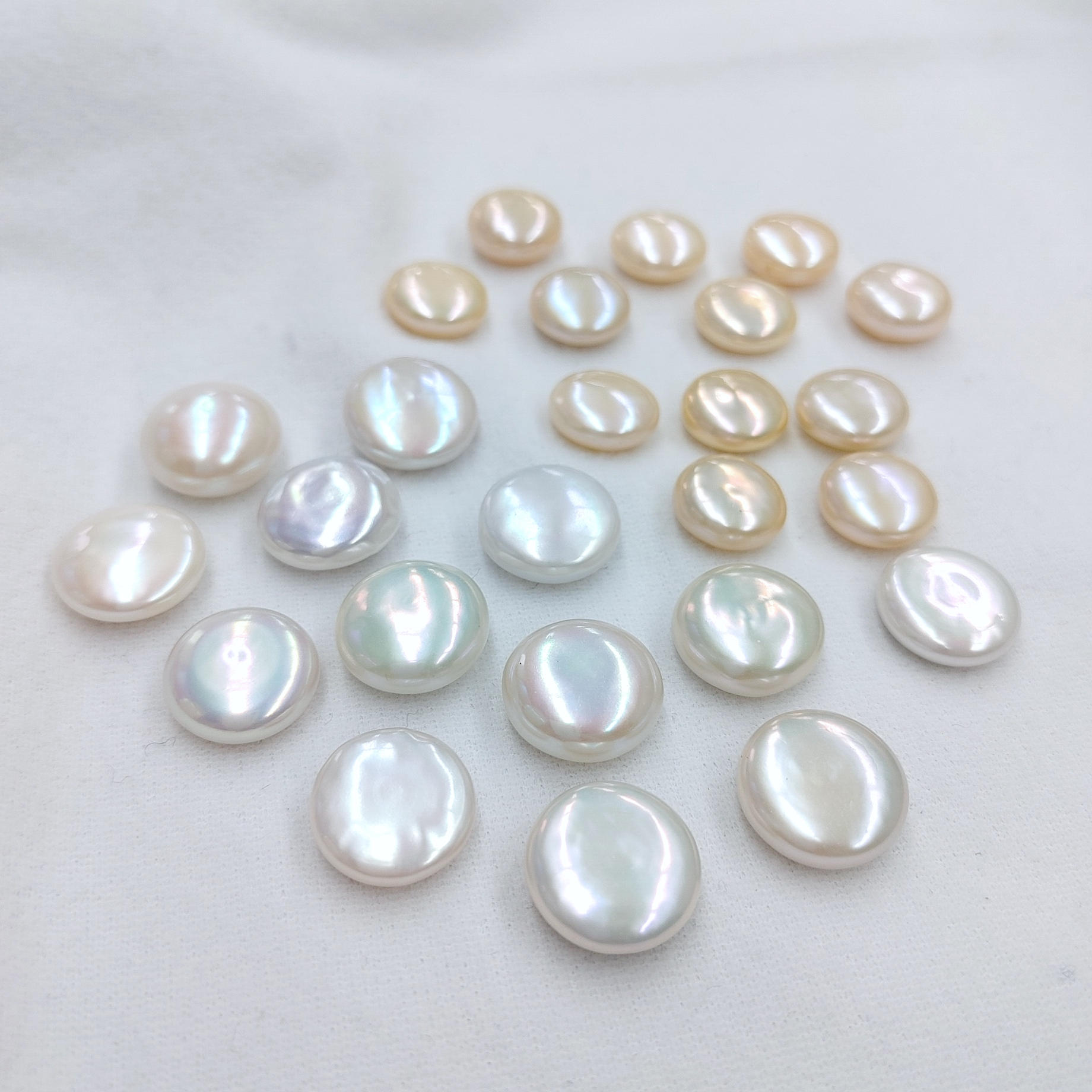 色はホワイトからクリーム,ゴールドまで生産され、大きさも9mm~18mmまで比較的大粒の珠が取れます。